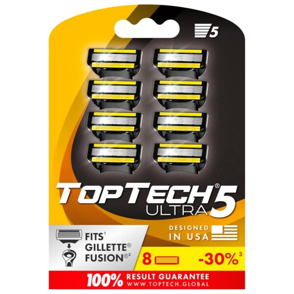 ULTRA 5 Razors for Men – Replaceable Cartridges for Manual Shaving Razor, 5 Blades Technology Refills – 8 Count Pack – Fits Gillette Fusion – Soft Shave & Sharp – Cost-effective Refill
